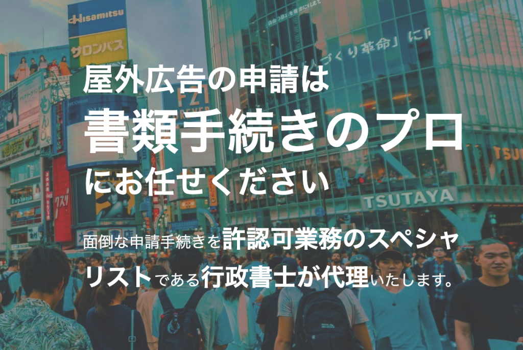 屋外広告業の登録や更新、屋外広告物(看板・ビルボード等)の許可申請を行政書士が完全代行。